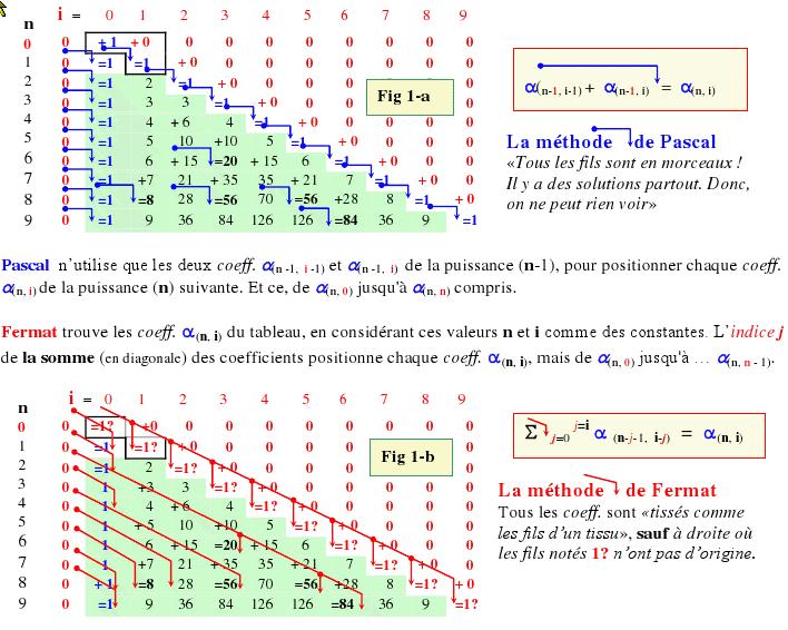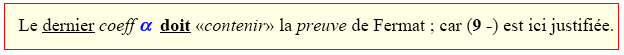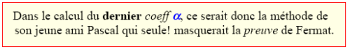 Il fallait donc chercher pourquoi le mode de calcul de Pascal «contient» un dernier coeff a = 1 = la dernière lettre t de la note … alors que Fermat dit qu’il ne le faut pas. Cela devenait très très intéressant !