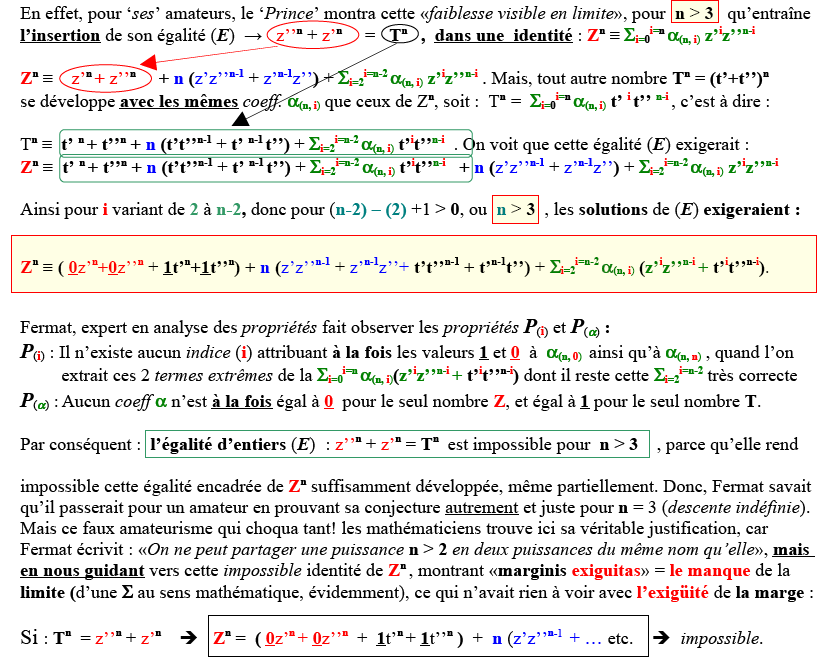 Les mathématiciens sauraient alors démontrer que Fermat s'est dupé lui-même, comme l'a déclaré le Professeur A. Wiles. Mais l’on ne douterait plus.