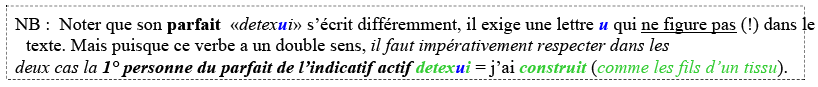 silence ce mot important «detexi» qui a deux sens en Latin, comme on va