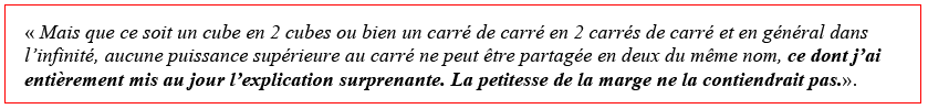 aucune puissance supérieure au carré ne peut être partagée en deux du même nom,