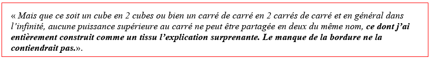 démonstration merveilleuse qui ne tient pas dans la marge.» ne