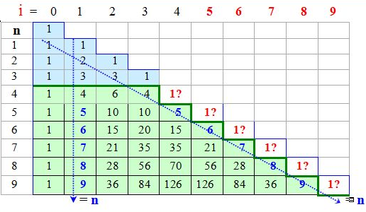 III – LE CODE : Calculer les coeff. a (n, i) , oui, mais … en diagonale.