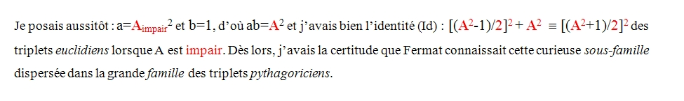 J’avais donc à vérifier si cette identité avait des propriétés surprenantes, elles pouvaient être dans la preuve que Fermat