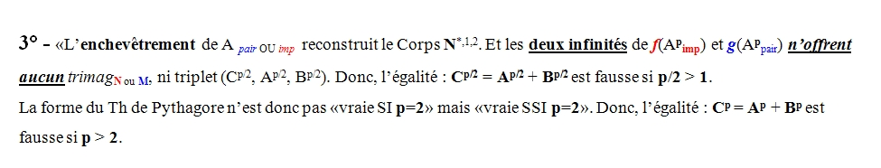 Le Th. de Pythagore n’est donc pas seulement «vrai si p=2 » mais est « vrai si et seulement si p=2 ».